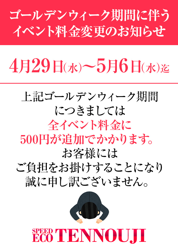 梅田店 ✨入店から2ヶ月限定✨ ※コースと本指名料金がRENEWAL※ イベント料金 75分 13,000円(税込) 90分 15,500円(税込) 注意事項 本指名のお客様はなんと +1,000円 でご利用可能!! 期間中なら何度でも新人割が適応可能!! 別途:特別指名料+α :週末料金+500円 :本指名料金+1000円 ※WEB会員様 500円割引併用可能※